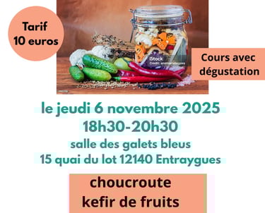 Cours de lacto-fermentation : choucroute, kéfir & ketchup